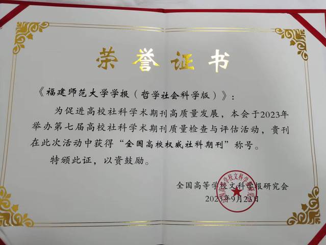 近日,在全国高等学校文科学报研究会举办的第七届高校社科学术期刊质量检查与评估中,《必一在线平台(中国)官网学报(哲学社会科学版)》被评为“全国高校权威社科期刊”。