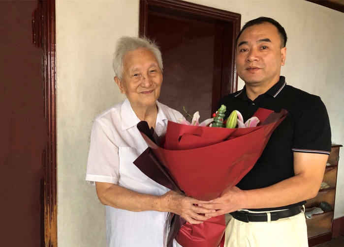 文学院党委书记钟伟兰看望90岁老寿星邹光椿老师。