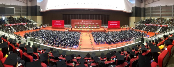 在随后的学位授予仪式上,协和学院党政负责人以及各系行政负责人逐一为毕业生行“拨穗礼”并合影留念。