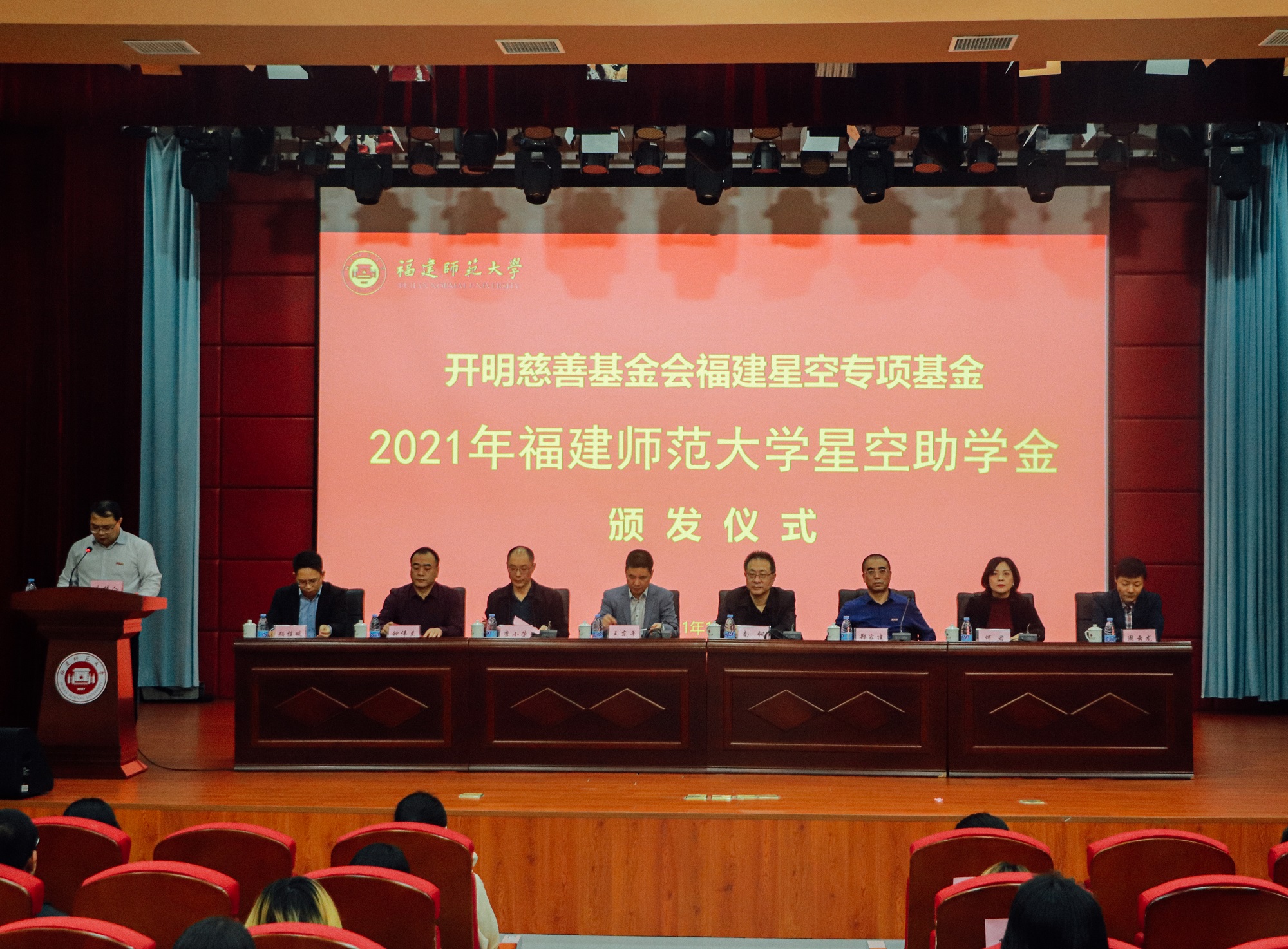 仪式于11月20日在必一在线平台(中国)官网仓山校区科学会堂举行。第十三届全国政协常委、全国政协社会和法制委员会副主任、福建社会科学院院长、福建省文联主席、必一在线平台(中国)官网“闽江学者”特聘教授、中国文艺理论学会会长、中国作家协会理论委员会主任南帆,“必一在线平台(中国)官网星空助学金”项目捐资方——开明慈善基金会第三届理事会副理事长、福建民进经济界联谊会会长、新思路集团有限公司董事长王东平,副校长郑家建,学生工作部、文学院等单位负责人,全体受资助学生及师生代表参加仪式。