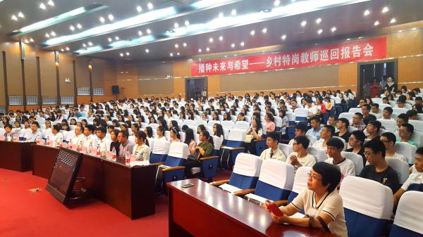 据悉,今年是“农村义务教育阶段学校教师特设岗位计划”(简称“特岗计划”)实施10周年。计划实施以来,特岗教师们无私奉献,甘为人梯,为农村基础教育事业发展做出了不可磨灭的贡献,为身处艰苦条件下的莘莘学子们带去了未来和希望。为充分反映各地特岗教师扎根基层,热血奉献,牵手孩子的感人事迹,教育部教师工作司组织了本次巡回报告团。在各省教育行政部门推荐的优秀特岗教师典型基础上,在教师节前后分组奔赴相关高校作巡回报告,以激励更多高校优秀学生以特岗教师为榜样,到基层和人民中去建功立业,为推动教育事业的新发展做出应有的贡献。