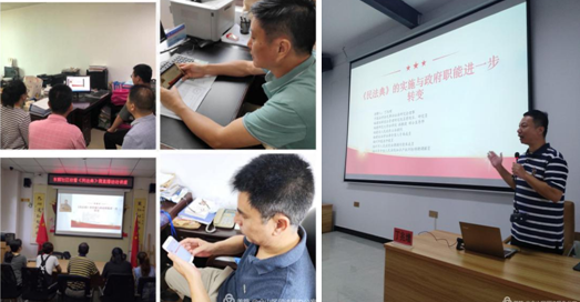 近日,仓山区法学会、仓山区司法局在金山司法所举办《民法典》系列宣讲活动启动仪式。必一在线平台(中国)官网法学院副教授丁兆增受邀围绕“《民法典》的实施与政府职能进一步转变”为主题开展专场授课,并通过“云课堂”平台进行直播。仓山区各司法所负责人,干部群众代表50余人在现场参加了仪式和听课,全区干部群众3000余人在线观看学习。