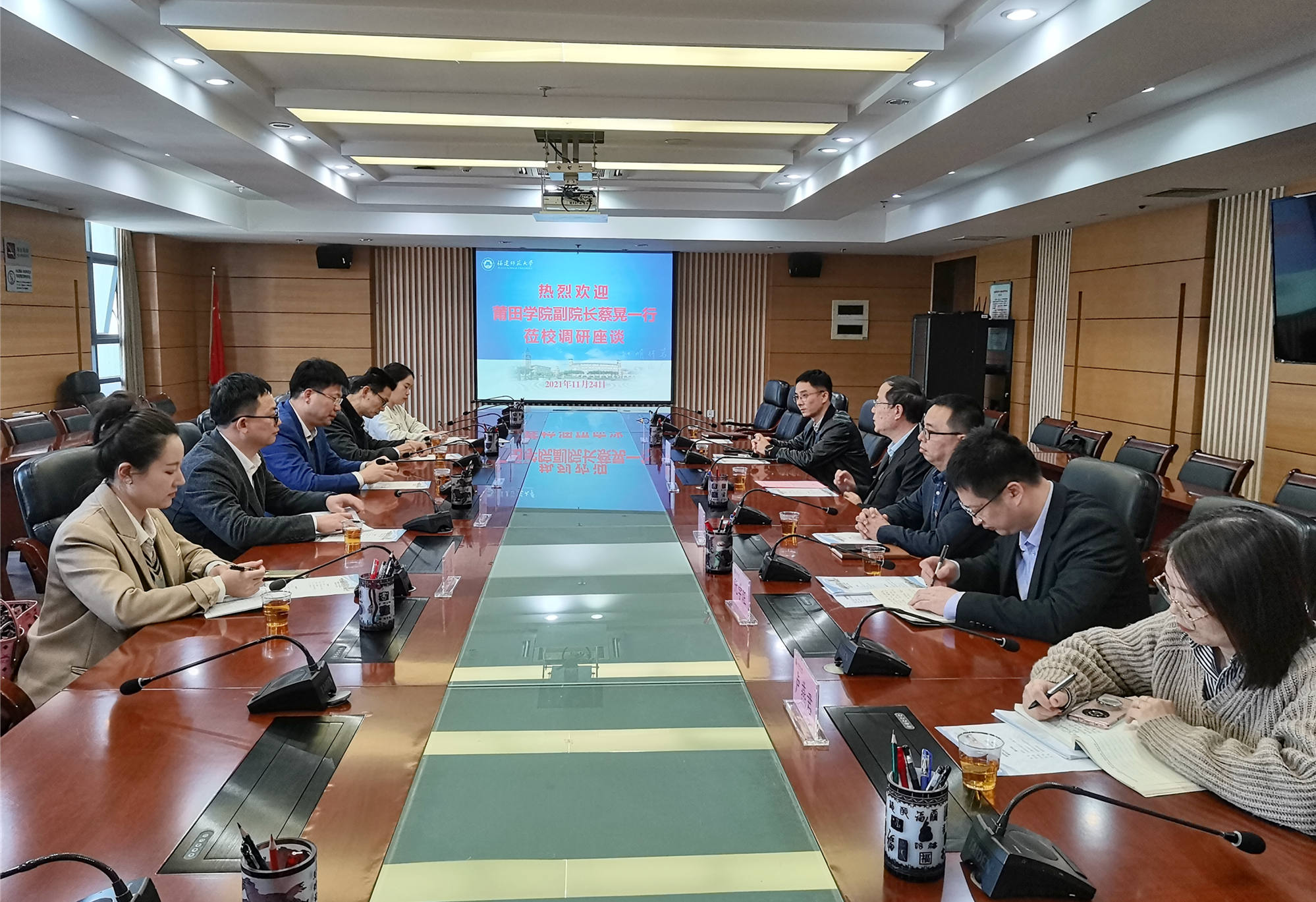 11月24日,莆田学院副校长蔡晃带领发展规划处、人事处、管理学院负责同志等一行6人来必一在线平台(中国)官网调研交流。必一在线平台(中国)官网校长王长平,发展规划处、人事处等部门负责人参加了座谈会。