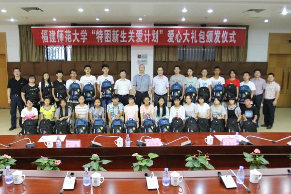 17日下午,学校在旗山校区第十会议室举行“新生关爱计划”爱心礼包颁发仪式。校领导林和平、王长平、叶燊,学校办公室、学生工作部(处)相关负责人、2016级新生辅导员和部分家庭经济困难新生代表参加了仪式。