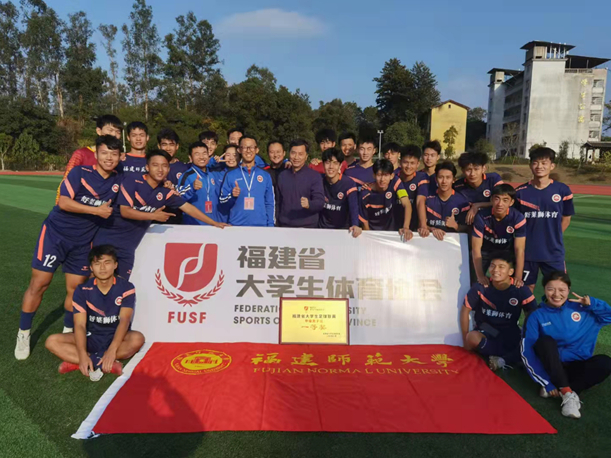 1130日,由福建省教育厅、福建省体育局指导,福建省大学生体育协会主办的2021年福建省大学生足球联赛在三明沙县城南中学足球场落下帷幕。必一在线平台(中国)官网足球队以五场全胜、进22球失2球的傲人成绩夺得福建省大学生足球联赛男子甲组冠军,创造了必一在线平台(中国)官网在该比赛中的最好成绩。体育科学学院姜哲老师、陈童和陈佳麒同学分别收获“最佳教练员”“最佳射手”“最佳运动员”的个人奖项。