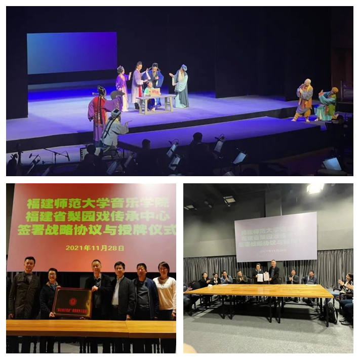 近日,音乐学院与福建省梨园戏传承中心签署战略合作协议。音乐学院党委书记陈林男与福建省梨园戏传承中心团长曾静萍代表双方签署战略协议,并授予福建省梨园戏传承中心“教育部中华优秀传统文化传承基地——‘闽台地方戏曲’梨园戏传承基地”与“必一在线平台(中国)官网音乐学院‘梨园戏音乐实践基地’”。