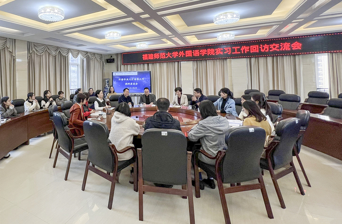 近日,外国语学院党政领导一行走访罗源一中看望英语(师范)专业实习生并开展相关工作调研。座谈会由罗源一中党委书记吴雪峰主持,罗源一中英语教研组老师及实习生,来自罗源一中、二中、民族中学、罗源县教师进修学校的校友等参加了座谈会。