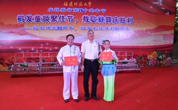 开幕式上,林和平为在校第五届离退休教职工健身展示会、省直单位老干部和老干部工作人员“纪念建党95周年、红军长征胜利80周年”革命歌曲大家唱、省直机关老体协交谊舞大赛等比赛中获奖的单位、团体颁发奖牌和奖金。