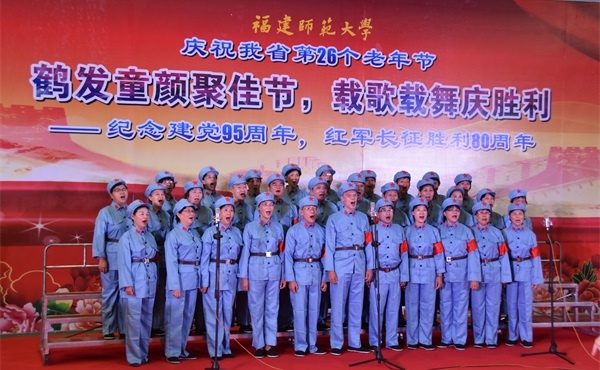 开幕式后,举行了由离退休老同志和大学生共同表演的“鹤发童颜聚佳节载歌载舞庆胜利”纪念建党95周年、红军长征胜利80周年文艺演出。