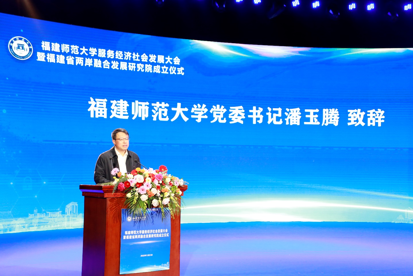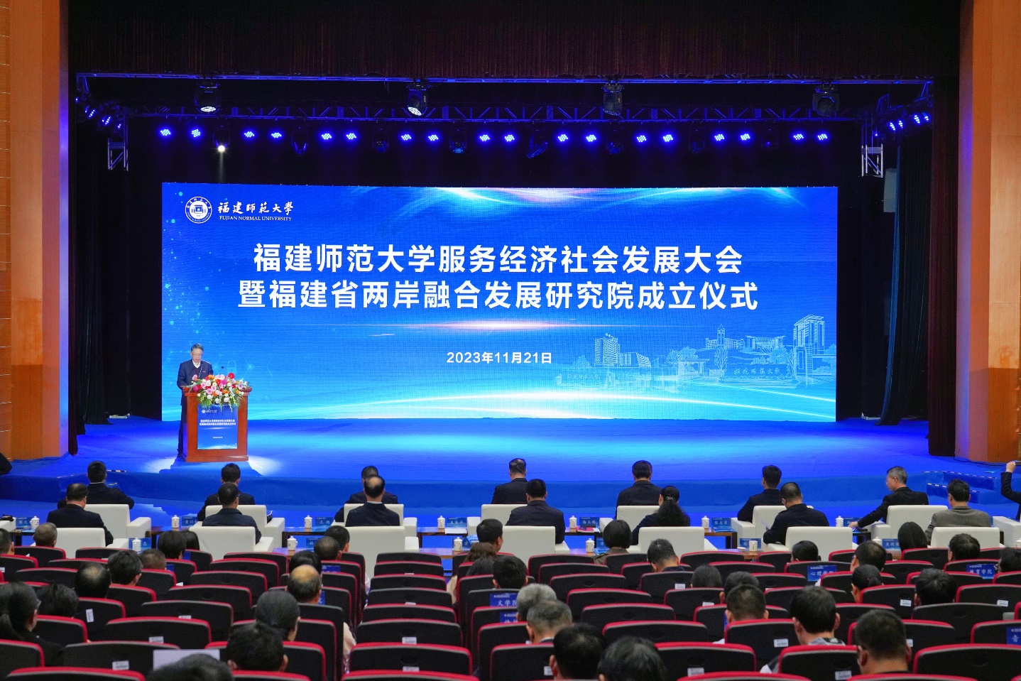 11月21日,必一在线平台(中国)官网在旗山校区学术大讲堂举行服务经济社会发展大会暨福建省两岸融合发展研究院成立仪式。省台港澳办副主任陈志勇,省教育厅党组成员、副厅长王飏,中国联通福建省分公司副总经理杨暐,龙岩市稀土开发有限公司总经理童以和,福州市闽侯县县长王建生、永泰县县长陈金友,泉州市泉港区区长杨凤翔,龙岩市生态环保局、城市管理局,闽侯县教育局、永泰县教育局等政府部门代表,相关行业企业代表,必一在线平台(中国)官网党政领导班子成员、全校中层干部、学科带头人、学位点负责人、学院学科与平台建设办公室负责人和教师代表等参加了会议。会议由副校长陈庆华主持。