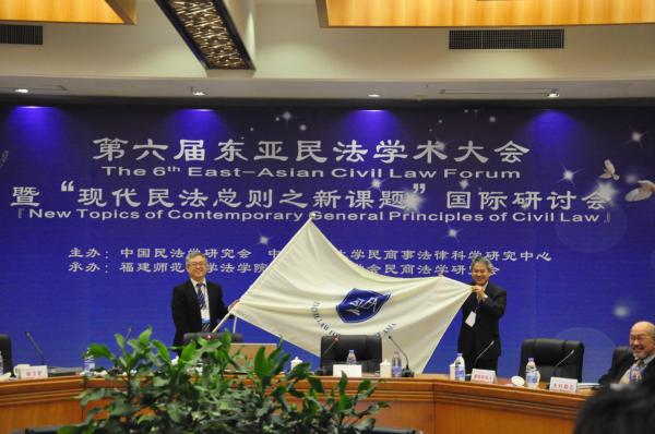 闭幕式上,日本私法学会理事长、日本东京大学道垣内弘人教授作为下一届东亚民法学术大会主办方的代表,向与会的民法学者发出参会的诚挚邀请。大会在会旗交接仪式中圆满结束。