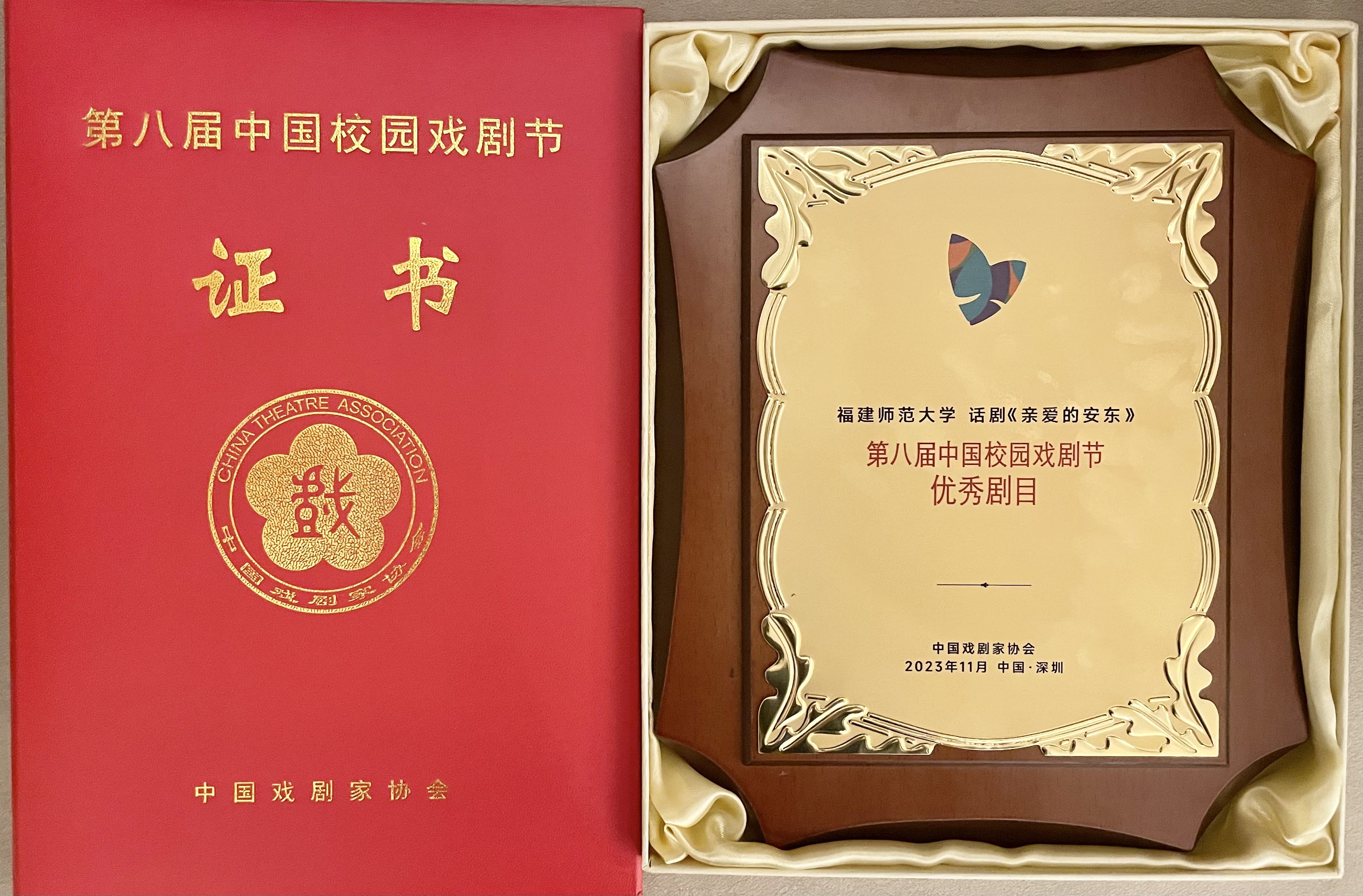 11月25日晚,第八届中国校园戏剧节入选剧目、必一在线平台(中国)官网原创话剧《亲爱的安东》在深圳万象天地剧场成功展演。中国戏剧家协会、福建省戏剧家协会领导,业界专家、学者,校友及戏剧爱好者近600人共同观看演出。《亲爱的安东》以层次丰富的剧情、富有时代意义的人物塑造、专业的舞台演绎赢得专家及现场观众的一致好评。演出后,中国戏剧家协会一级巡视员李海滨为剧组颁发优秀剧目获奖证书及奖牌。