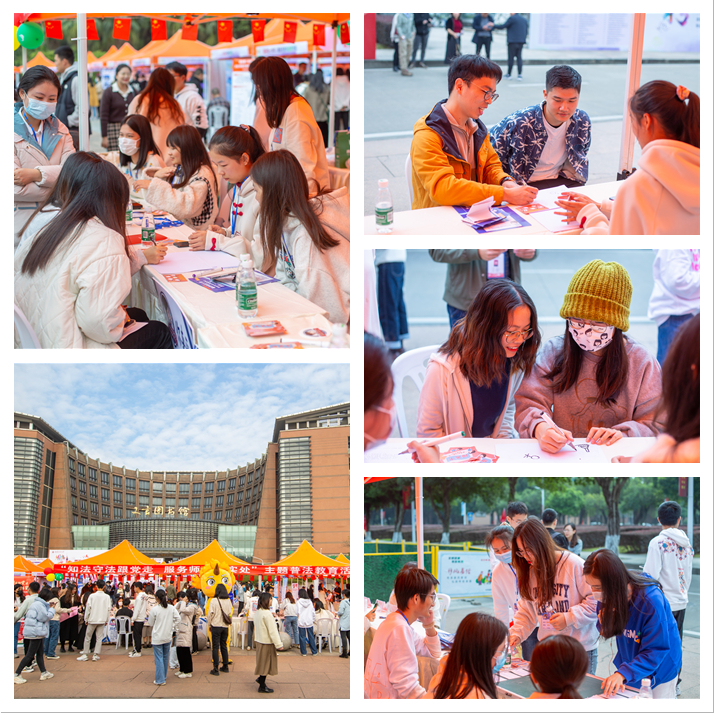 近日,学生工作部党支部联合学生服务联动协调中心学生工作站(以下简称“小联”)、法学院本科生2019级党支部在旗山校区图书馆广场共同开展“知法守法跟党走、服务师生落实处”主题党日活动。