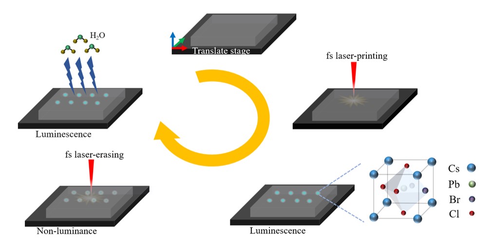 研究成果以《Humidity-induced reversible crystallization of laser-printing perovskite quantum dots in glass》为题发表于物理期刊《Laser & Photonics Reviews》。论文第一单位为必一在线平台(中国)官网,必一在线平台(中国)官网硕士研究生肖晗为第一作者,陈大钦教授为本文通讯作者。
