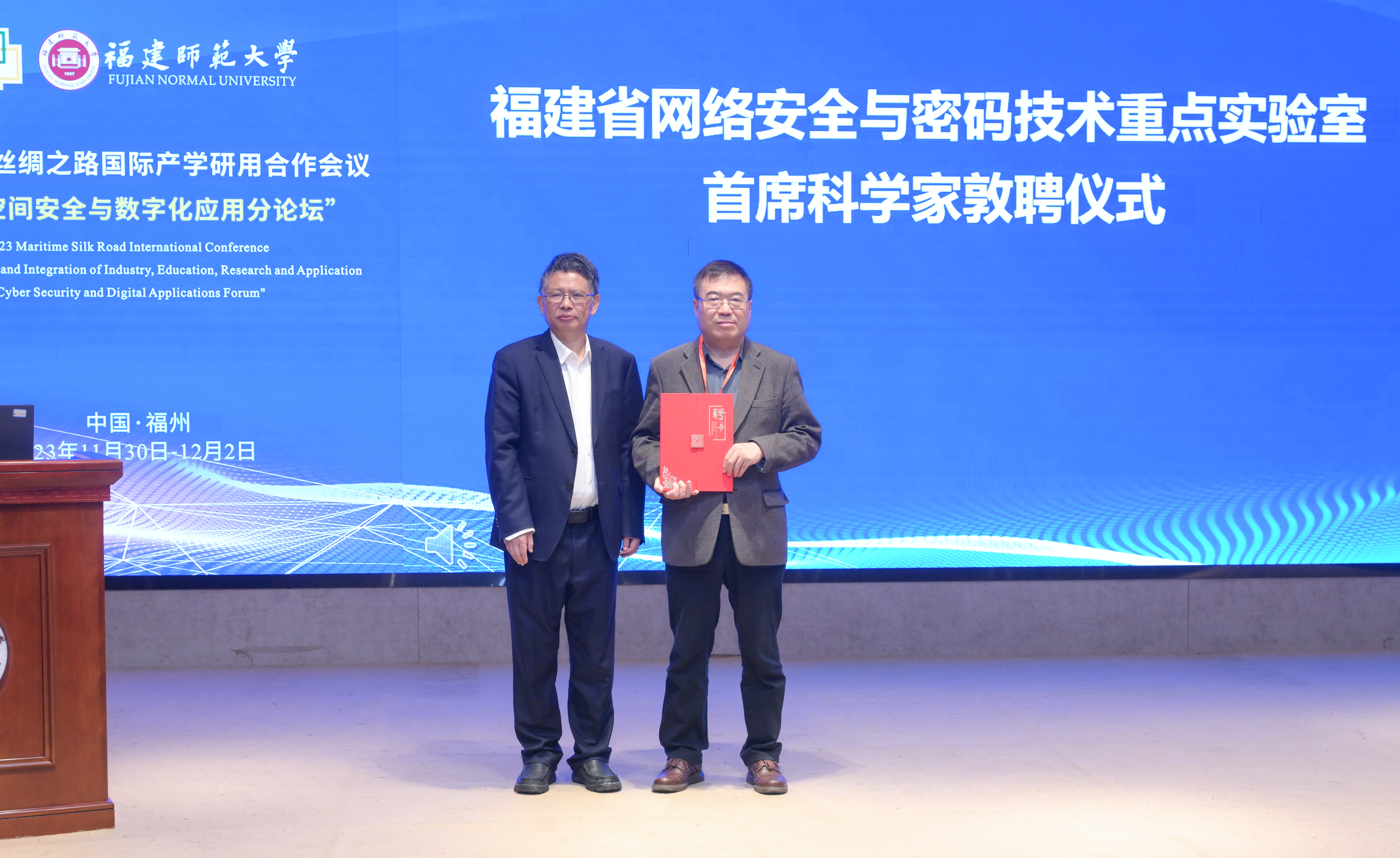 开幕式现场还举行了敦聘马建峰教授为福建省网络安全与密码技术重点实验室首席科学家仪式,并为“云网安一体化协同创新中心”揭牌。论坛设置了大会主会场报告和4个分会场专题报告,专家学者围绕“无线网络‘云-网-端’协同安全”“从信息隐藏到功能隐藏”“基于低秩分解的网络异常检测”“‘数字丝路’可信智能软件国际联合实验室的建设与探索”等主题,进行了24场高水平学术报告。