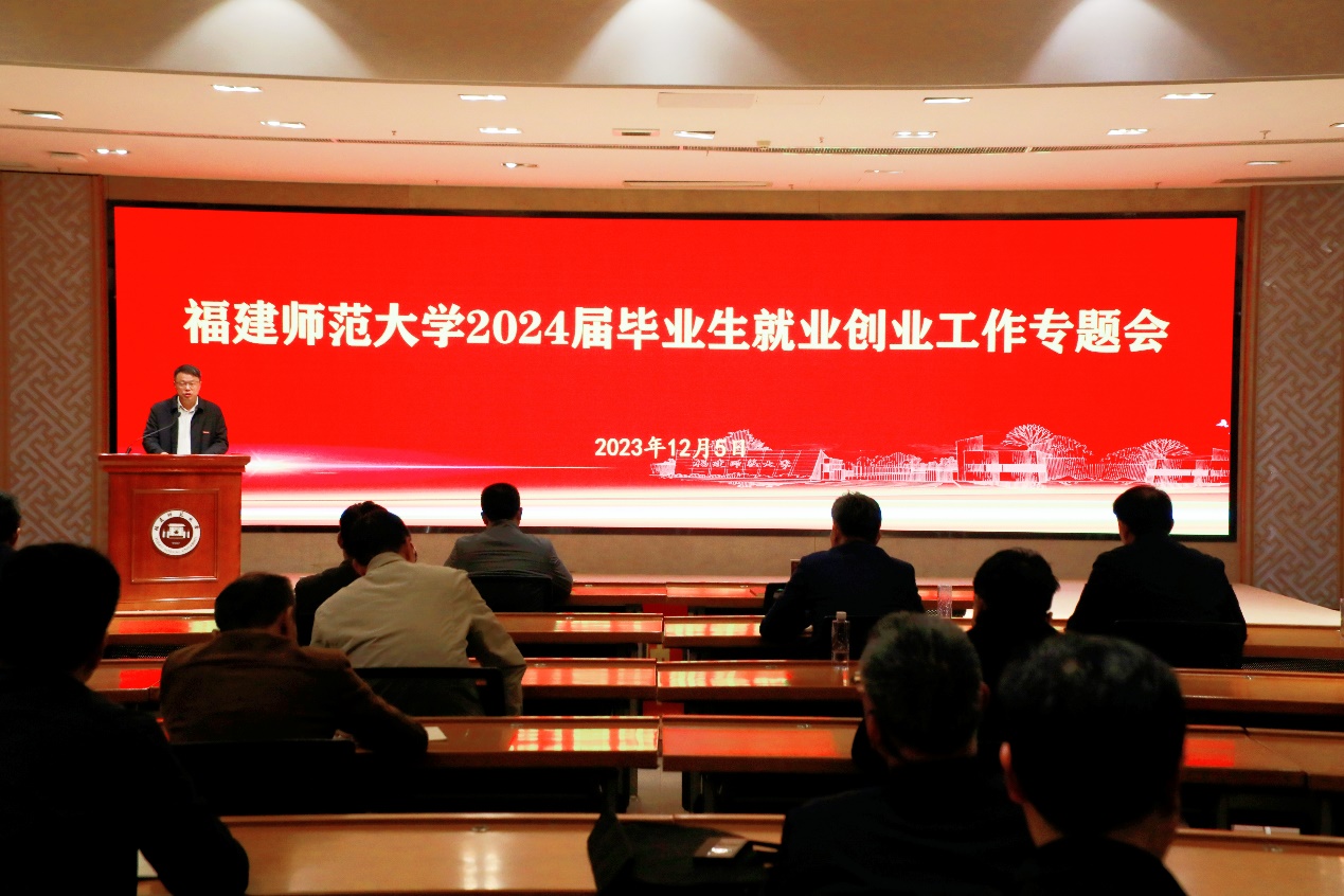 会上,潘玉腾充分肯定了学校2023届毕业生就业创业工作成效,要求认真贯彻落实教育部、人社部视频会议精神,紧密结合学校实际,扎实做好2024届毕业生就业创业工作。他强调,要深刻认识2024届毕业生就业工作面临的严峻形势,切实把毕业生就业工作摆在更加突出、更为紧迫的位置;要认真总结学校毕业生就业工作经验,充分抓住当前毕业生就业的“黄金期”“窗口期”,全力促进毕业生高质量充分就业;要严格落实就业工作“一把手”工程,持续深入推进“访企拓岗促就业”专项行动,有效发挥校园招聘主渠道作用;要着力加强全程就业指导,推动思政工作与就业工作深度融合,细化特殊群体就业帮扶,全面提升学生的就业竞争力。