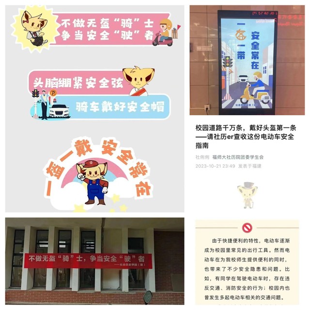 织密安全宣传网,树牢安全意识“防线”。学院充分利用线上线下宣传平台、各年级晚点名等形式向全体师生进行广泛宣传教育,讲清讲透电动车使用安全隐患,介绍校园电动车管理相关制度,强调校园文明出行注意事项。学院在宿舍楼、领先楼LED屏幕持续滚动播放交通安全提示,制作一批校园电动车安全贴士,设置在道路隐患突出点及宿舍出入口等显眼位置。