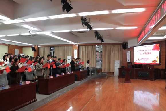 走进大学“沉浸式”感悟。12月4日,学院党政领导、青年教师带领学院学生代表共同朗读《中华人民共和国宪法》部分条文,合唱主题歌曲《宪法伴我们成长》。同时,校(学生)法律援助中心联合2023级研究生团支部在校内提供法律咨询和法治宣传服务。2023级本科生团支部在模拟法庭召开“弘扬宪法精神,争做时代新人”集中教育。学院团委在“一站式”学生社区开展“翰墨飘香润心田 丹青溢彩书宪章”宪法日主题书法和海报设计比赛。院学生会推出“小廌说法”宪法日特别系列视频,线上累计观看人数突破2000余次。