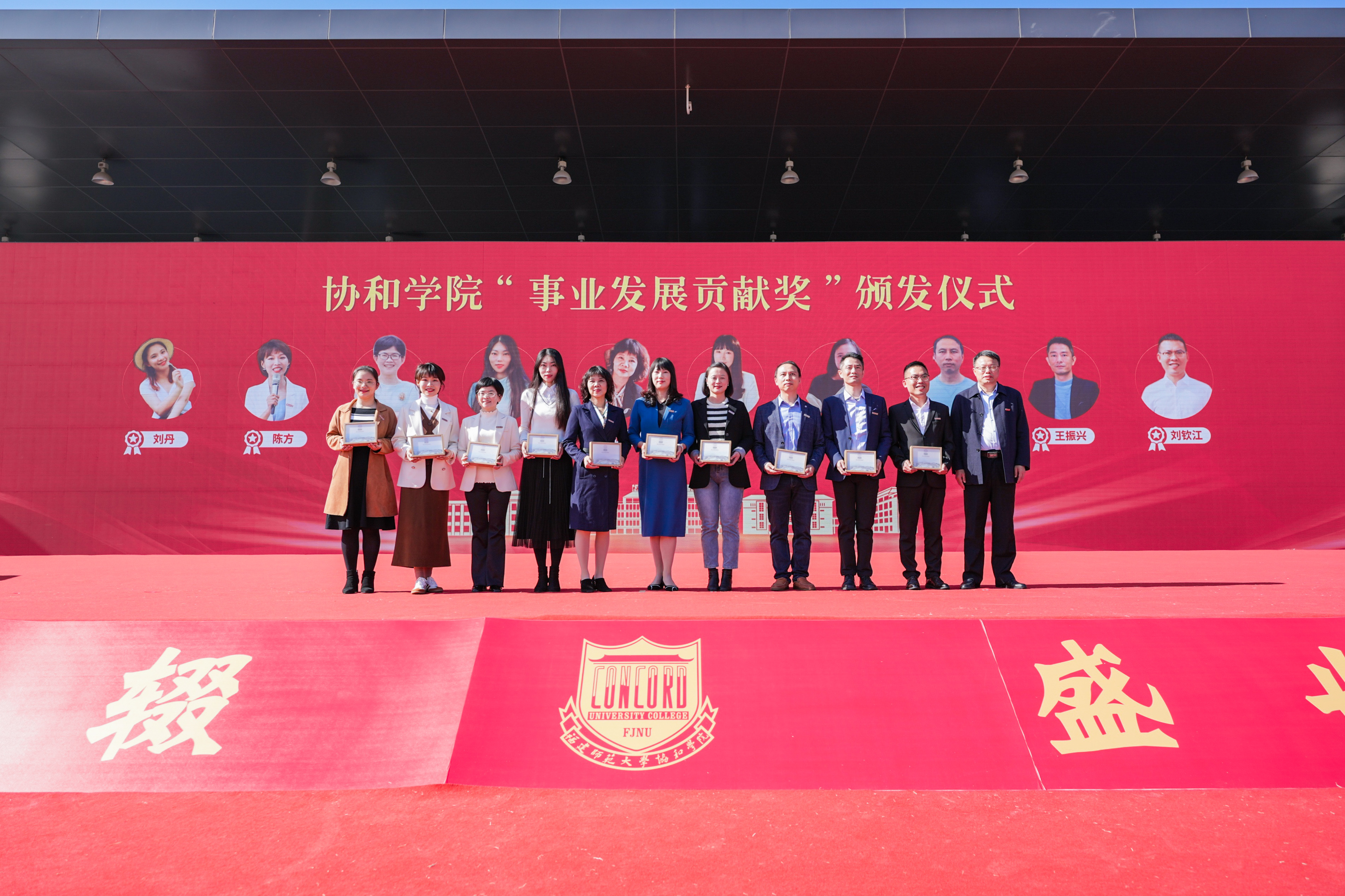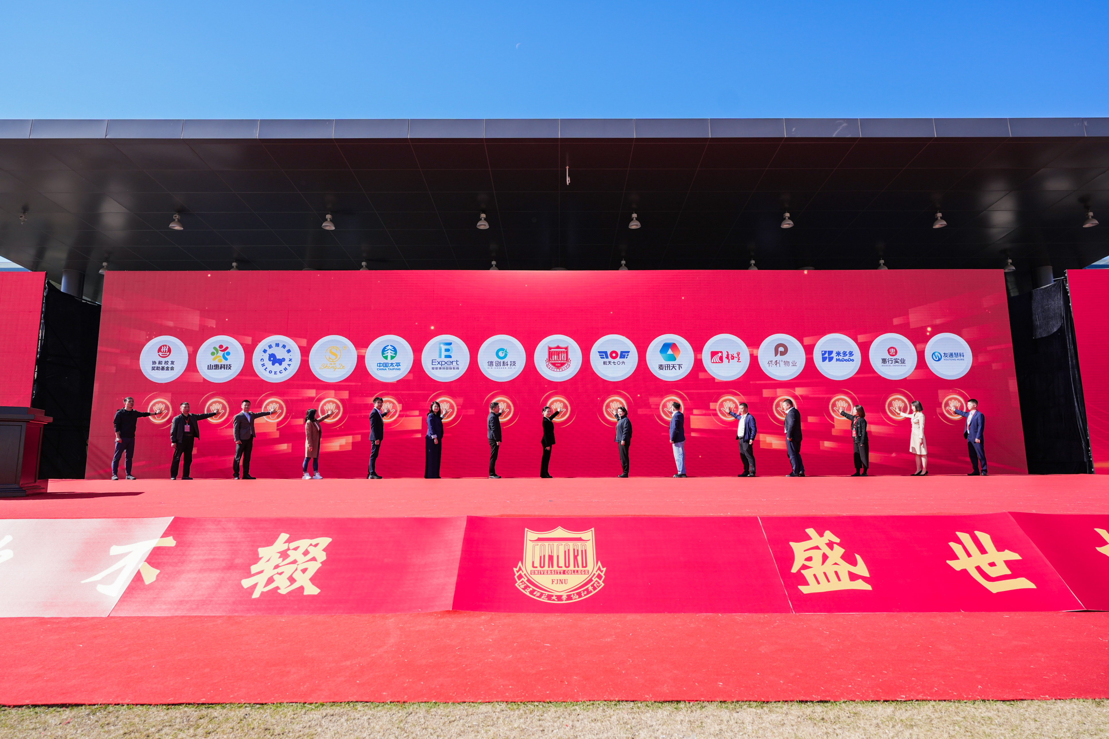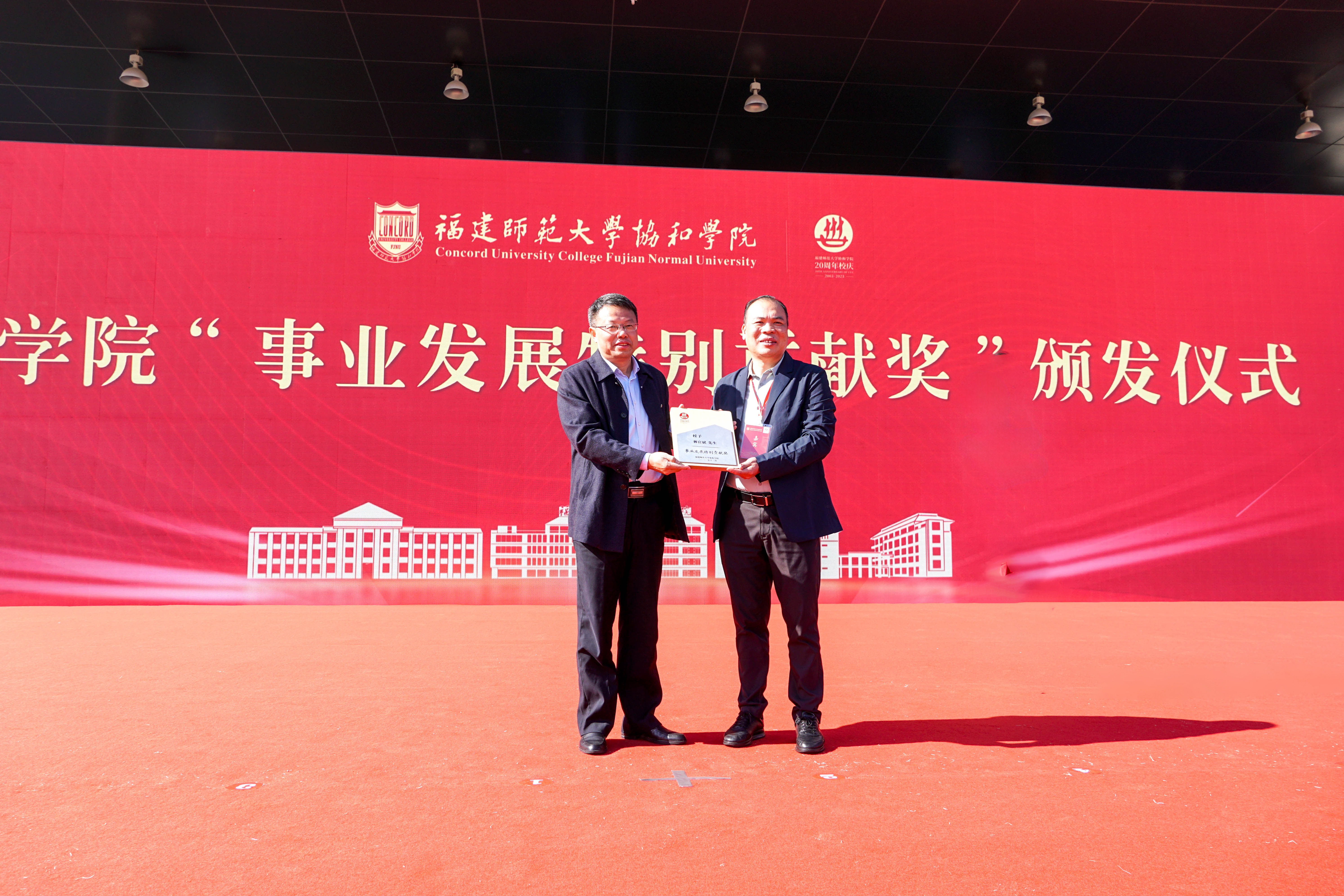 会上,潘玉腾为福建安健致远国际贸易有限公司董事长林官斌颁发协和学院“事业发展特别贡献奖”,为在院工作10年以上的在岗教职工代表颁发了协和学院“事业发展贡献奖”。陈晓红代表协和学院与中国航天科工二院七〇六所、福建省信创科技有限公司、麦讯天下科技有限公司、北京爱思博特国际教育投资有限公司、超星集团有限公司、太平财产保险有限公司福建分公司、保利物业福建公司、胜德集团、福建米多多网络科技有限公司、厦门魔角兽科技有限公司、浙江惠行实业有限公司、泉州山惠信息科技有限公司、福州友通慧科实业发展有限公司、协和校友奖助基金会等14家单位共同启动合作办学仪式。
