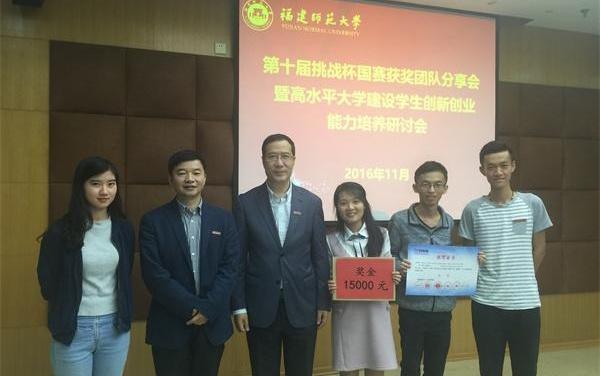 获得金奖的团队是《福州净生元环境技术服务有限公司》(生命科学学院,参赛同学:生命科学学院吴嫣然,经济学院王明灿、刘灵灵、江雪祺,生命科学学院方森海,经济学院程轩宇,生命科学学院黄诗雯、林琳、郑莹;指导老师:生命科学学院王明兹、经济学院俞姗、经济学院王盛、生命科学学院黄宁、生命科学学院陈必链、经济学院黎元生)