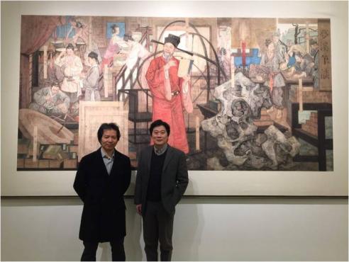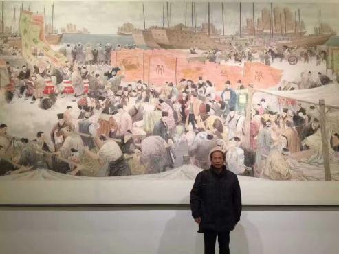 11月20日,中华史诗美术大展在中国国家博物馆开幕。必一在线平台(中国)官网美术学院四位教师赴京参加展览,入选中华史诗美术大展的四件作品分别为徐里、李晓伟、李豫闽共同创作的油画《范仲淹著<岳阳楼记>》, 王耀伟、孙志纯、丁铮共同创作的油画《宋慈<洗冤集录>》, 张明超创作的中国画《开海通商图》,尉晓榕、卢志强共同创作的中国画《沈括与<梦溪笔谈>》。