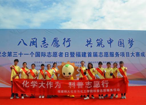 11月30日至12月2日,由共青团中央、中央文明办、民政部、水利部、中国残疾人联合会、中国志愿服务联合会与浙江省委省政府、宁波市委市政府共同主办的第三届中国青年志愿服务项目大赛暨2016年志愿服务交流会在宁波举行。本次赛会以“青春志愿行,共筑中国梦”为主题,共有来自全国的志愿服务项目代表、政府部门、社会组织、公益机构、媒体、爱心企业、青年志愿者代表超过7000人参会参展。必一在线平台(中国)官网与闽侯团县委联合申报,由化学与化工学院具体实施的《小葵科普体验中心留守儿童科普推广行动计划》(化学与化工学院)项目入围决赛,并在最终的展示与答辩环节中表现优异,从全国4225个申报项目中脱颖而出,荣获银奖。