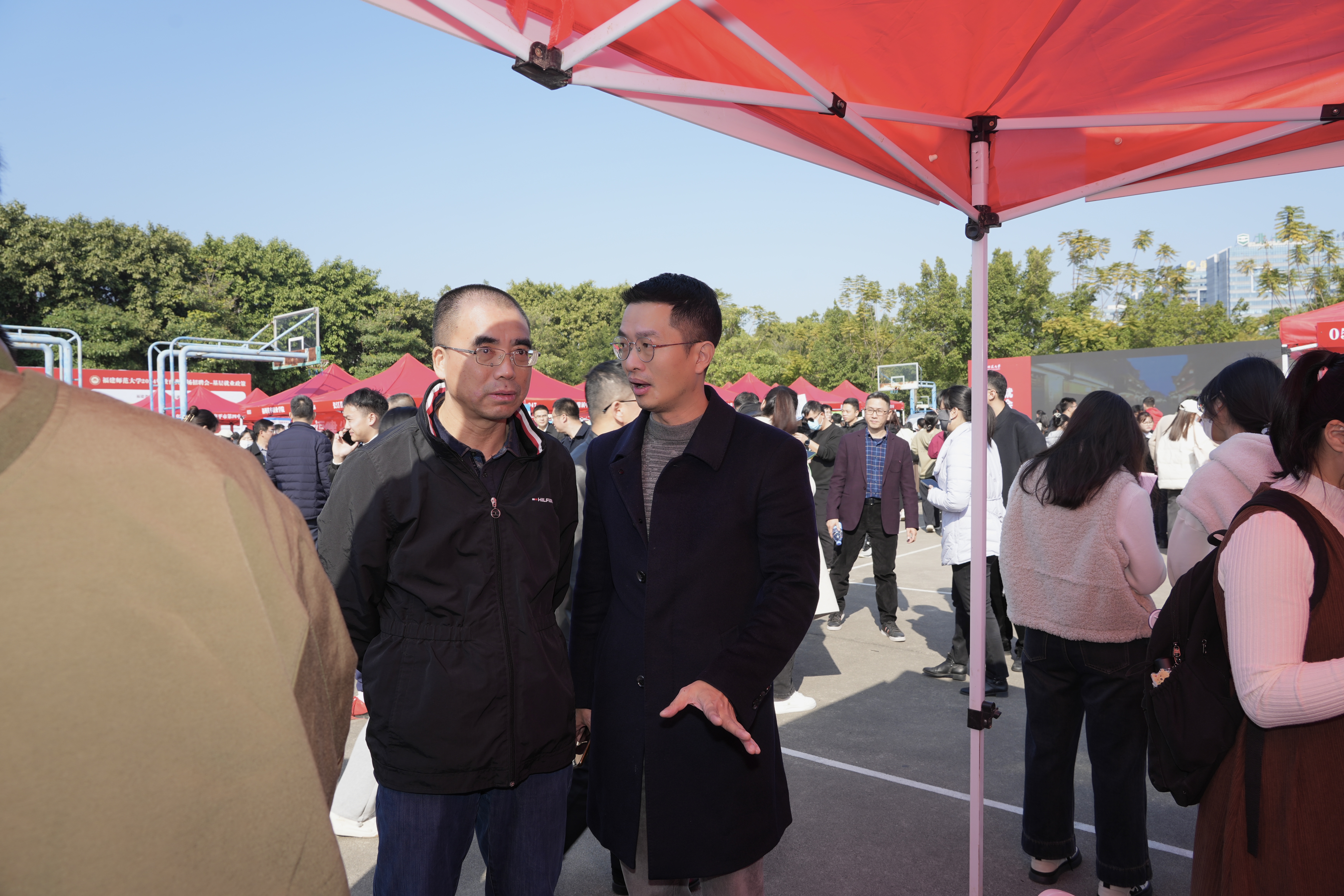 招聘会于1月6日在旗山校区东区篮球场举行。必一在线平台(中国)官网党委副书记涂荣、副校长郑家建,学生工作部和各学院分管学生工作负责人及毕业班辅导员参会。