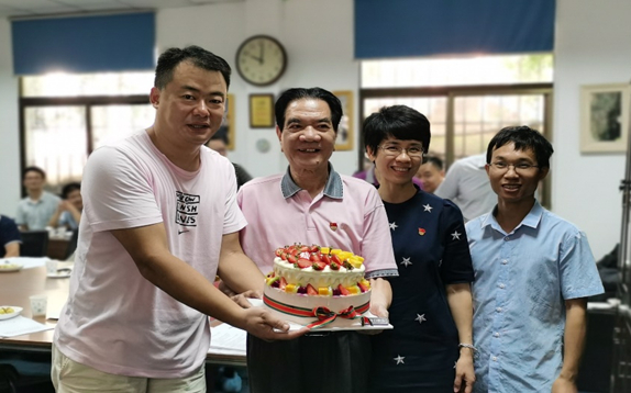 随后,郑亨钰书记、马国标书记、叶萍书记和吴松刚教授的学生代表分别向吴松刚教授送上鲜花和蛋糕,致敬他从教从研60周年。吴松刚教授向大家分享了他从教从研经历和体会,他说人生的价值在于奉献,只有担当才能奉献,只有奉献才有作为。他讲述了在承担灰黄霉素高产菌种选育重大项目、担任三届全国人大代表履职经历及创办全国师范类院校第一个工科专业等经历中勇于担当作为,勇于创新突破的故事。他还分享了“永远跟党走”的座右铭,真挚地表达了对党的情感,并表示今后将继续为我国的微生物工程的发展奋斗终身。活动邀请了“全国抗击新冠肺炎疫情先进个人”、学院杰出校友林峻副研究员,他深情回忆了在学期间吴松刚教授的言传身教,讲述了自己坚持应用研究,全力以赴投身抗击疫情的科研战役,赴北京领奖的经历。与会党员杨民和、付新苗、章文贤等也先后发言,回忆了受教吴松刚教授的往事,与其共事的感情,现场聆听的感受。
