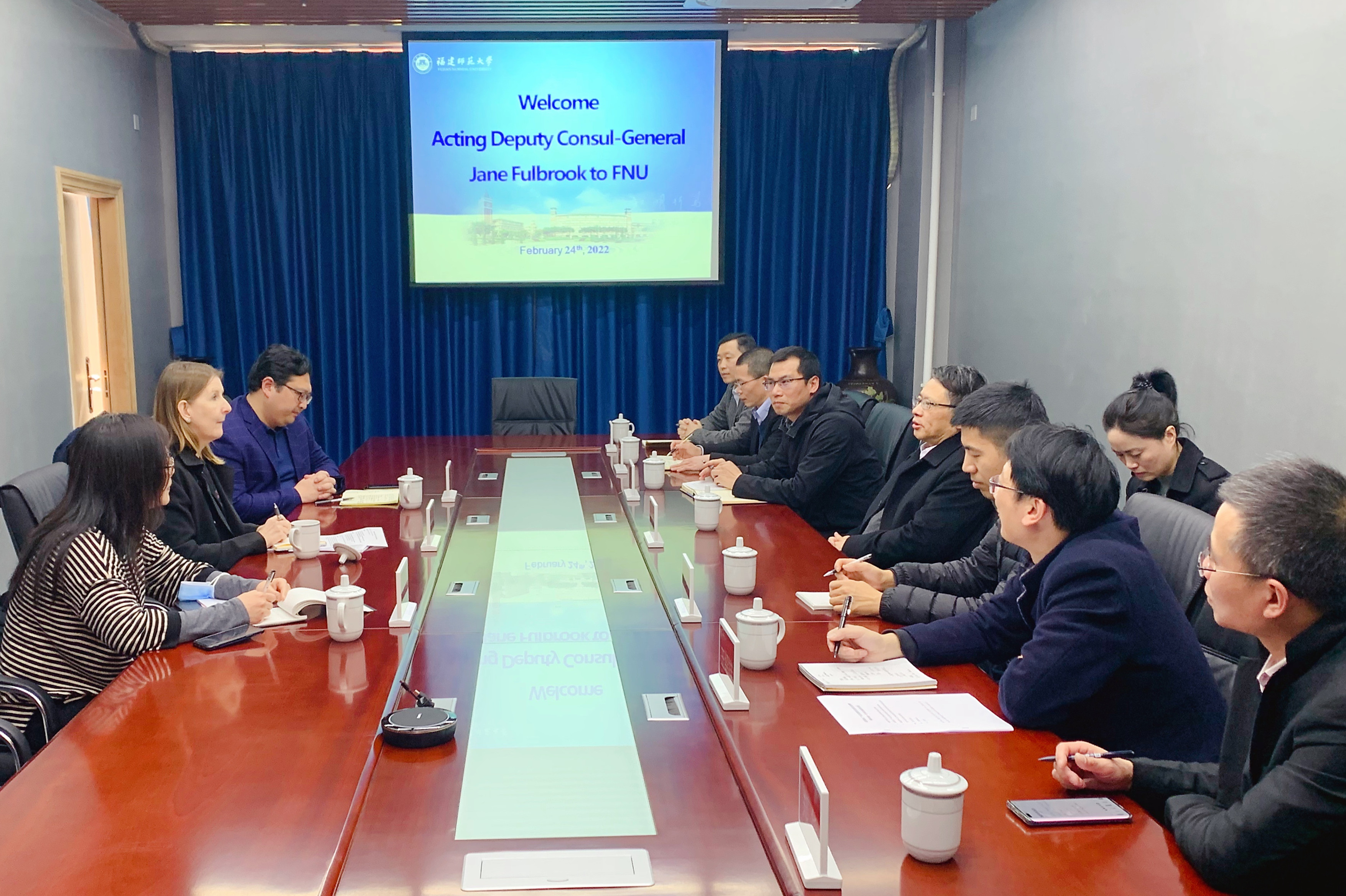 2月24日,英国驻广州总领事馆代理副总领事傅珍妮、高级对外联络主任蔡岱松、英国教育文化处华南区负责人何颖一行来校访问,福建省外事办公室领事处陈许冰陪同参访。必一在线平台(中国)官网副校长陈庆华会见了来宾,国际合作与交流处、哈德斯菲尔德学院相关负责人参加了会谈。