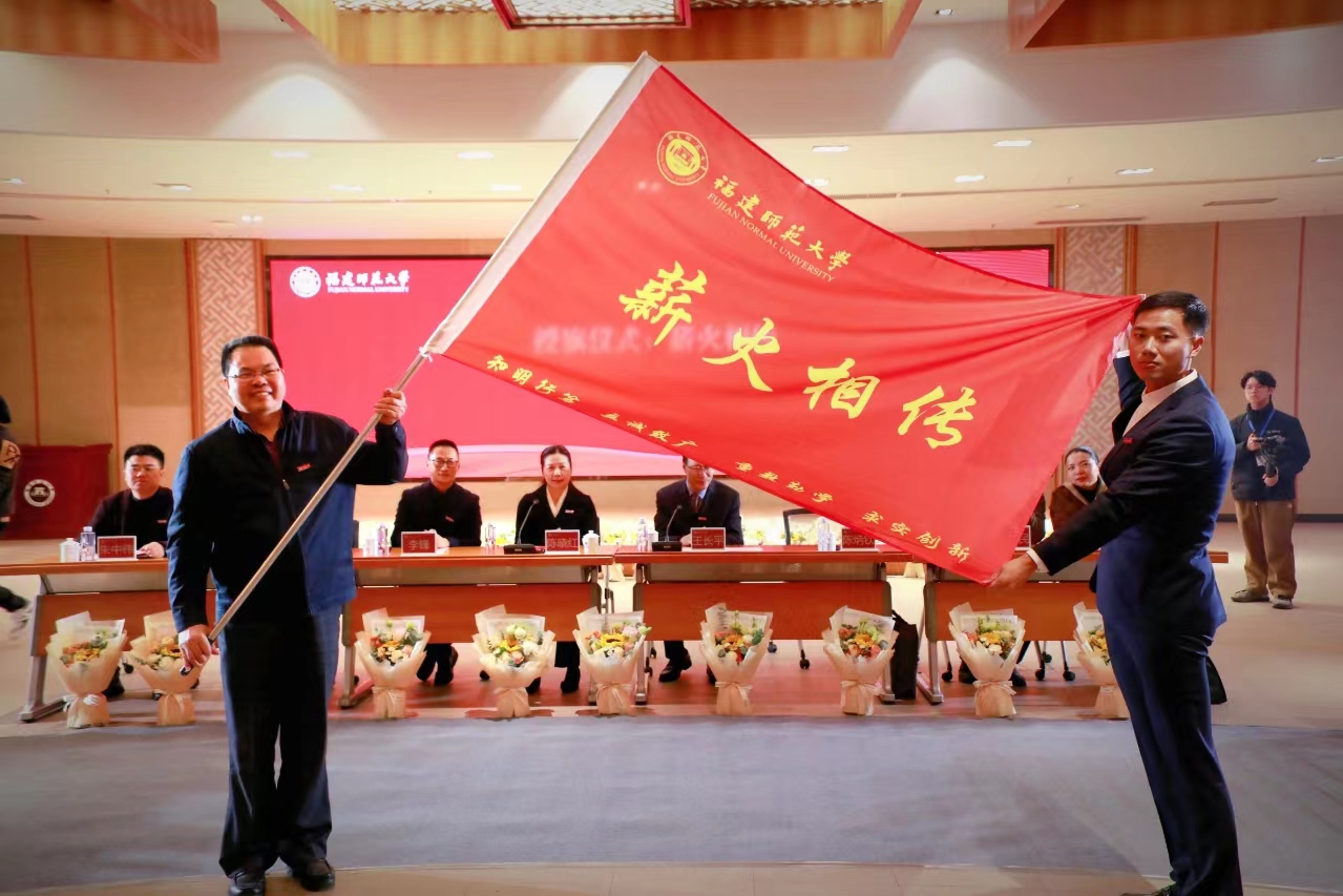 荣休教师代表黄荔钦老师和王敏老师分别发表了感言,他们回顾了在校工作、教书育人的历程,表达了对学校的感恩之情、祝福之意和为学校改革发展继续发光发热的决心。荣休教师代表陈炳钦老师将承载光荣使命的“薪火相传”旗帜授予青年教师代表黄羚杰老师。