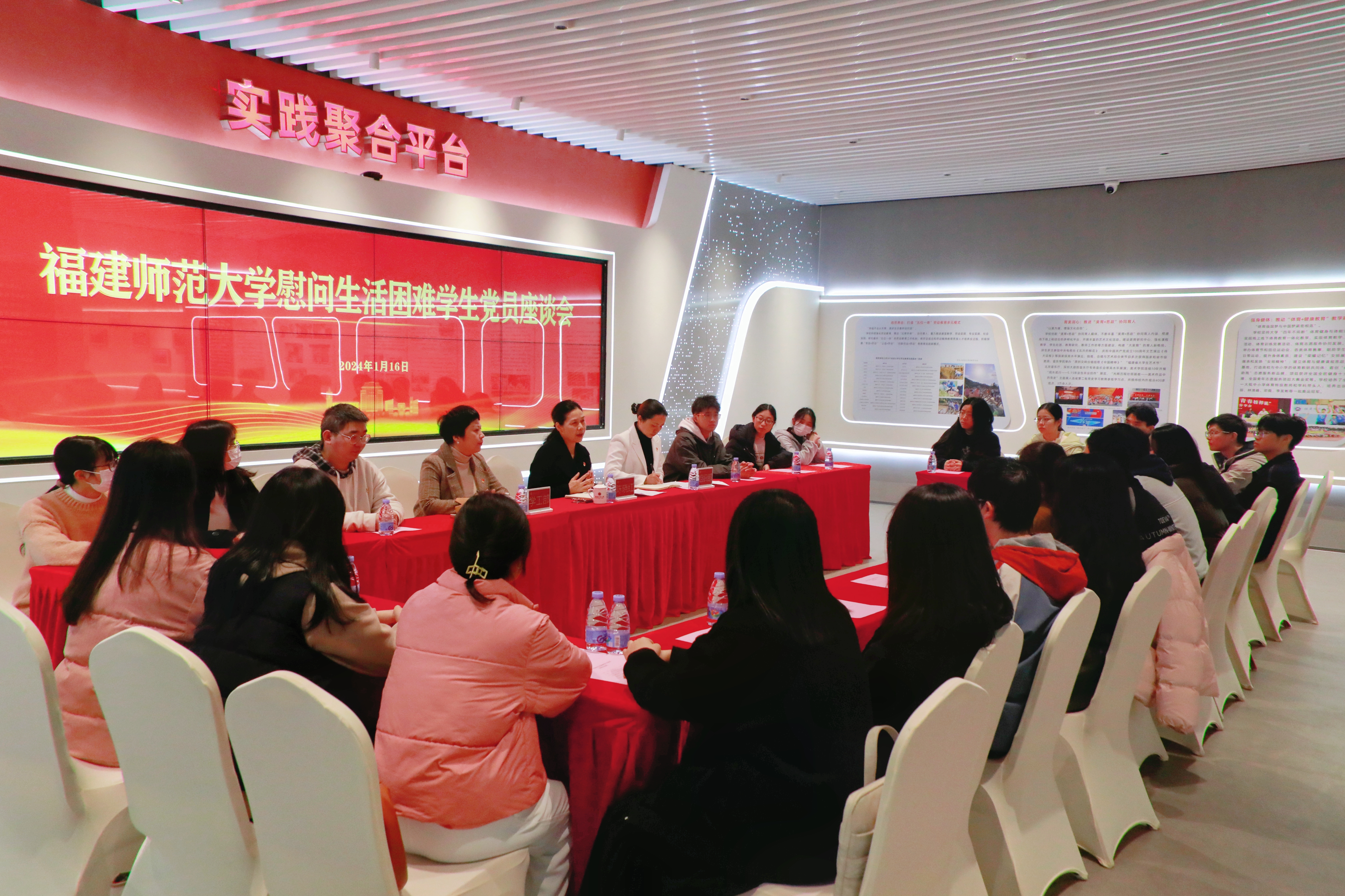座谈会于1月16日在旗山校区新时代大学生社会大课堂活动中心举行。校党委副书记陈晓红,组织部、学生工作部等单位负责人和生活困难学生党员代表共30余人参加了座谈会。