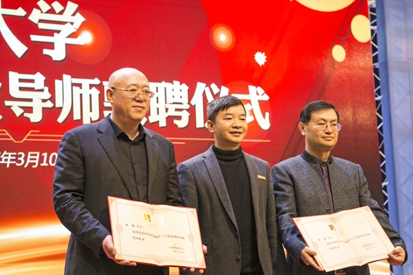 报告会前进行了导师敦聘仪式,叶燊代表学校敦聘张强、曾劲为必一在线平台(中国)官网创新创业导师。