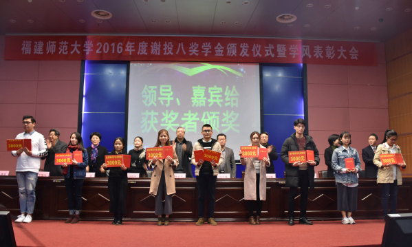 美术学院负责人宣读了2016年度“谢投八奖学金”获得者名单。美术学院2014级本科生谢燕珊同学代表获奖学生发表感言,表达了对