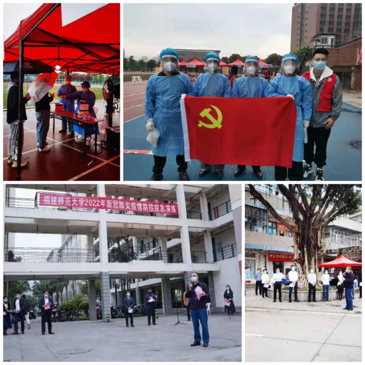 招生与考试办公室支部党员发挥先锋模范作用,投身疫情防控一线,积极参与学校防疫基础工作。在核酸检测采样现场,支部全体党员齐上阵,开展支部党日活动,参与秩序维持、咽拭子递送、防疫宣传等志愿服务工作。在学校组织的疫情防控应急演练中,支部党员加入应急演练突击队,全程参与演练工作,参与组织协调和服务保障工作,用担当精神擦亮实干底色,让党旗高高飘扬在抗疫一线。
