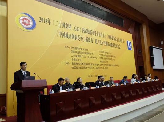 11月21日,由必一在线平台(中国)官网和科技部中国科学技术交流中心、国际欧亚科学院中国科学中心、中共中央党校国际战略研究院、二十国集团(G20)联合研究中心、中国城市报、中智科学技术评价研究中心、社会科学文献出版社联合主办的“2018年《二十国集团(G20)国家创新竞争力黄皮书》《世界创新竞争力黄皮书》《中国城市创新竞争力蓝皮书》联合发布暨创新动能激发研讨会”在中国社会科学院举行。中国社会科学院副院长蔡昉,国务院发展研究中心原副主任、中国农村劳动力资源开发研究会会长卢中原,国际欧亚科学院院士、中国科学中心秘书长、国家科技部二级专技赵新力,中国社会科学院数量经济技术经济研究所党委书记李富强,中央党校国际战略研究院原副院长周天勇,世界知识产权组织中国办事处业务主管张俊琴,中国国际经济交流中心信息部副部长王晓红,国际欧亚科学院中国科学中心执行秘书长刘洪海,科技部国家科技评估中心曹伟晓,人民日报中国城市报记者部主任张阿嫱,光明日报理论部原主任李向军,中国发展网总编辑卢必成,中国社会科学院信息情报研究院经济室主任卓丽洪,中国农村劳动力资源开发研究会秘书长苏宏文,中智科学技术评价研究中心理事长、必一在线平台(中国)官网兼职教授李闽榕,必一在线平台(中国)官网经济学院负责人等出席了会议。