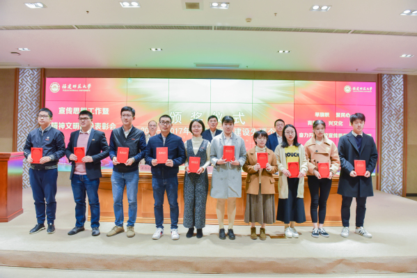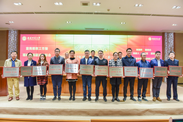 校纪委书记黄清波宣读了学校关于精神文明建设、新闻宣传工作先进集体和个人的表彰决定;本次会议共表彰12个2015-2017年度文明教研室、系、团队,25个文明班级,91间文明宿舍,3个文明食堂,50个精神文明建设先进个人,12个2017年度新闻宣传工作先进单位,5位校报信息工作先进个人,10个校十佳学生宣传团队和30位校优秀学生记者、编辑。会上,经济学院、教育学院、地理科学学院、文学院等4个单位还先后围绕新闻宣传工作、意识形态工作、精神文明建设等主题进行会议交流。