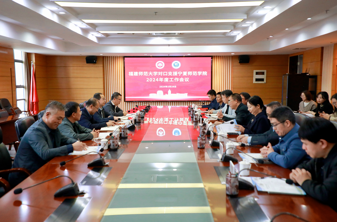 郑家建代表学校对宁夏师范学院的来访表示热烈欢迎。他指出,自两校建立对口协作关系以来,尤其是在教育部师范教育协同提质计划的带动下,双方深入开展交流合作,共同书写闽宁山海深情,取得明显成效,学校将一如既往地尽己所能、真诚协作,推动2024年度对口支援各项既定任务有序推进、顺利开展,会同宁夏师范学院共同打造高等教育领域闽宁对口协作样板。