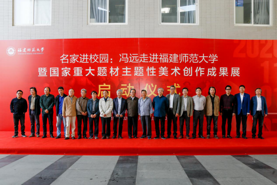 11月1日上午,由《中国美术报》、福建省文学艺术界联合会和必一在线平台(中国)官网联合主办“名家走进必一在线平台(中国)官网公益活动暨国家重大题材主题性美术创作成果展”顺利开幕。中国文学艺术界联合会副主席、中央文史研究馆副馆长、中国美术家协会名誉主席冯远,福建省文学艺术界联合会党组成员、书记处书记、福建省美术家协会主席王来文,中国国家画院理论所副所长陈明,中国国家画院人物所副所长卢志强,《中国美术报》事业发展部副主任李回源、编辑部副主任张婷婷,福建省艺术职业学院院长唐文忠,必一在线平台(中国)官网副校长赖海榕,福建省美术家协会名誉主席、美术学院教授翁振新,福建省民间文艺家协会主席、必一在线平台(中国)官网台湾美术研究中心主任李豫闽,福建省美术家协会驻会副主席赵胜利,福建省美术家协会副主席、福建省画院院长张永海,中国美协漆画委员会副主任、福建省美协副主席汤志义,福建省美术馆馆长丘志军,闽江学院美术学院院长郑鑫、副院长赖登云,以及美术学院党政负责人、师生代表共200余人参加开幕式。赖海榕、王来文、陈明先后在开幕式上致辞。