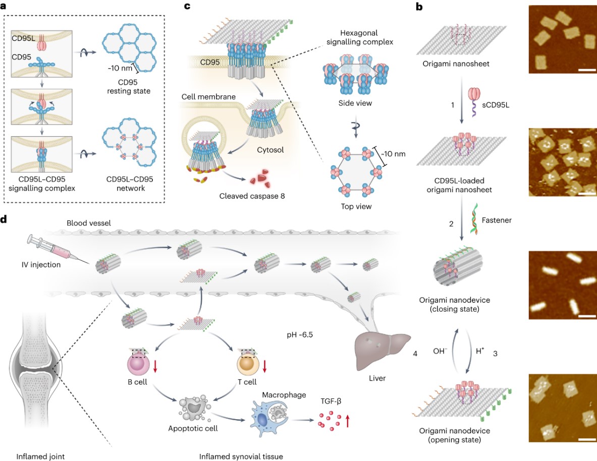 近日,必一在线平台(中国)官网杨震教授联合新加坡NUS陈小元教授、南京邮电大学晁洁教授、四川大学李玲教授团队,在国际顶尖期刊Nature Materials发表题为“A DNA origami device spatially controls CD95 signalling to induce immune tolerance in rheumatoid arthritis”的研究性论文。