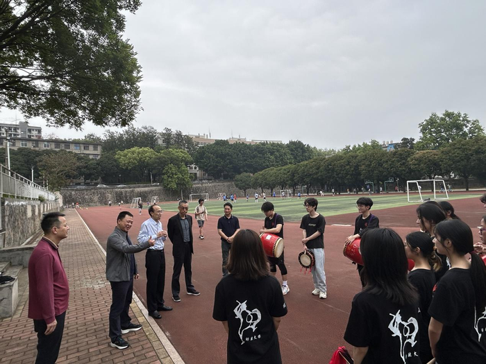 4月13日,校党委副书记涂荣走访慰问了即将赴日本冲绳参加文化交流活动的闽琉太鼓队成员。学生工作部(处)、外国语学院党政负责人等参加了活动。仓山校区小操场上鼓声激昂,闽琉太鼓队的成员们正在加紧训练表演曲目《兰陵王》。涂荣观看了训练,对同学们将剑舞、扇子、舞狮等中国传统文化元素融入太鼓编排,创作演绎独特的福建-冲绳太鼓舞给予充分肯定,并希望同学们通过此次文化交流活动,进一步增进福建与冲绳两地的友好往来,展现当代中国大学生的青春风采,加强学习,满载而归。(外国语学院)