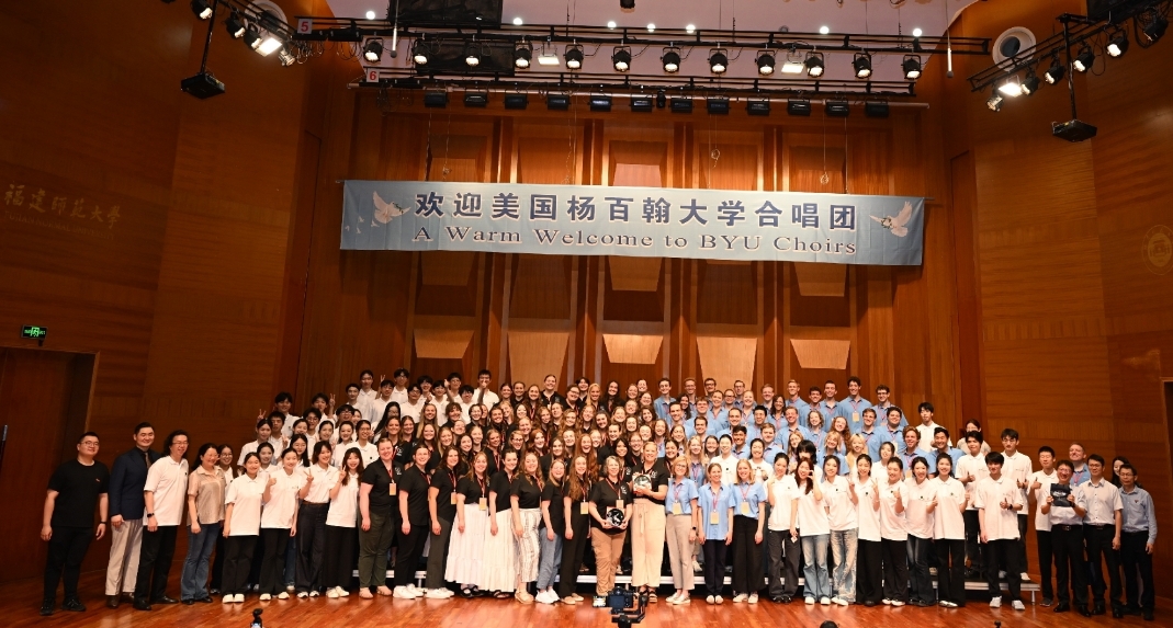 On July 11th, the Brigham Young University (BYU) Concert Choir and BYU Women’s Choir visited Fujian Normal University (FNU) as part of the 2025 “Bond With Kuliang” China-U.S. Youth Choral Week. The event featured a vibrant musical exchange with the FNU College of Music Choir, highlighting the power of music to connect cultures.