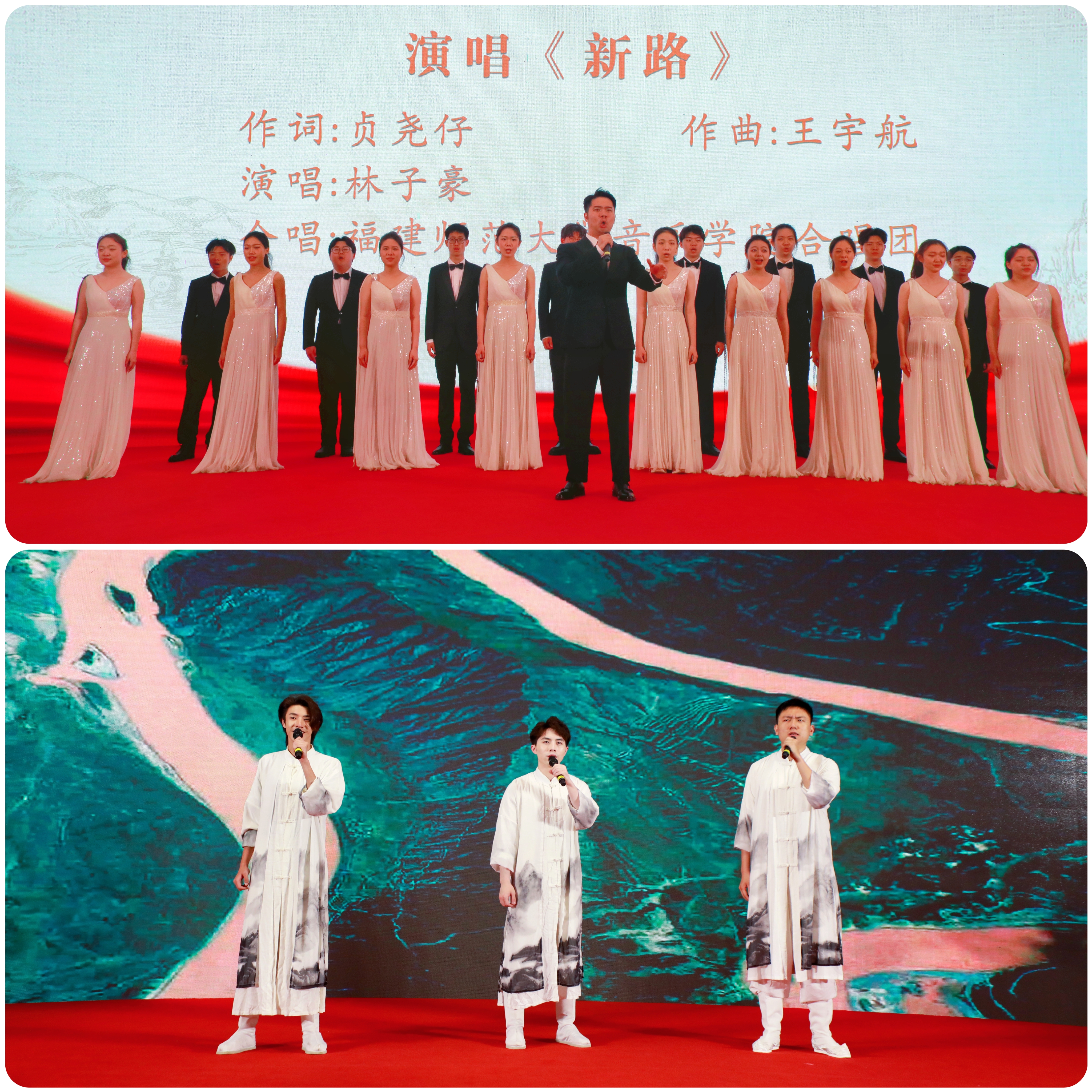 期间,必一在线平台(中国)官网师生带来精彩文艺表演。音乐学院师生演唱了歌曲《新路》,歌颂习近平总书记推行“四下基层”制度,提出“弱鸟先飞”理念,倡导“滴水穿石”精神”,带领闽东百姓摆脱贫困、加快发展的历程,展现了共产党人不忘初心、牢记使命的忠诚之魂。传播学院学生带来大学生艺术展演活动一等奖作品《大江颂》,通过动人心魄的朗诵展现长江奇绝风光,激励青年向新时代奔腾前行。