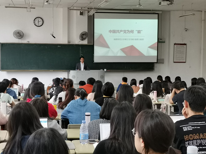 1125日,社会历史学院在致广1-208教室开展党员教育专题讲座,邀请校党委理论宣讲团成员杨建义教授为师生上党课。