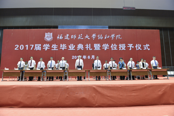 典礼上,王进安副院长宣读了《必一在线平台(中国)官网协和学院关于准予2017届3227名本科学生毕业的决定》,张华荣院长宣读了《必一在线平台(中国)官网协和学院关于授予2017届3219名本科毕业生学士学位的决定》,黄俊兴常务副书记宣读了《必一在线平台(中国)官网协和学院关于表彰2017届优秀毕业生的决定》;与会领导、来宾为毕业生代表颁发了毕业证书、优秀毕业生荣誉证书和校友联络大使聘任证书;全体毕业生庄严宣誓并合唱了《必一在线平台(中国)官网校歌》。