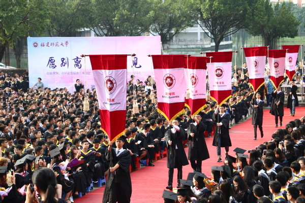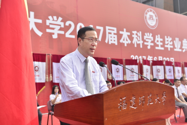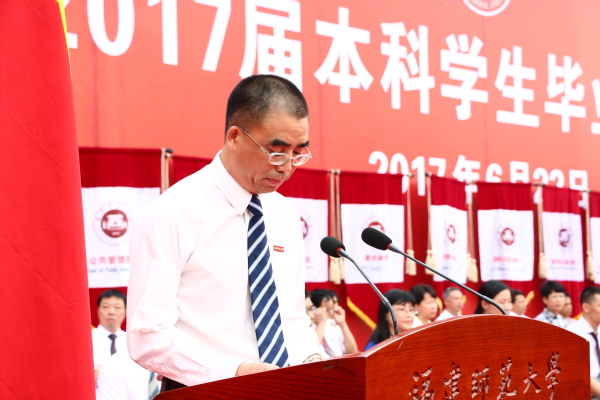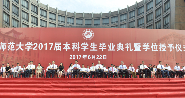 典礼于 王长平校长在致辞中希望毕业生们能够勇于担当、敢于创业。担当是一种品格,源于责任,希望毕业生们秉承“知明行笃、立诚致广”的校训,有情怀、有担当、有定力,不为世俗所扰,不为物欲所惑,不为名利所累,在脚踏实地中为人民服务、为社会奉献、为国家担当。创业是一种选择,始于梦想,希望毕业生们坚守梦想,敢为人先,让创新成为一种习惯,让创业成为一种追求,在创新创业中成就出彩人生。 郑家建副校长宣读了《必一在线平台(中国)官网关于准予2017届5699名本科学生毕业的决定》《必一在线平台(中国)官网关于授予2017届5685名本科毕业生学士学位的决定》和《必一在线平台(中国)官网关于表彰2017届832名优秀毕业生的决定》。 第十二届中国大学生年度人物、经济学院丁中贤同学代表全体毕业生发言。来自各学院的优秀毕业生代表向教师代表敬献鲜花,表达对老师们谆谆教导的感激和不舍之情。毕业生代表满怀豪情地朗诵了原创诗歌《师大,梦启程的地方》,带领同学们悉数四年来仍历历在目的独家记忆。全体毕业生庄严宣誓,并深情合唱《必一在线平台(中国)官网校歌》。 随后,校领导王长平、叶燊、郑家建分别为全体毕业生执行了“拨穗礼”,并一一合影留念。 本次典礼还面向全校学生开展了对联征集、心愿清单、留下你想说的话等一系列毕业季活动,并在典礼现场专门为毕业生们配套精心设计的具有学校特色的“毕业证书”展板、创意手卡等,营造了浓厚的毕业文化氛围。