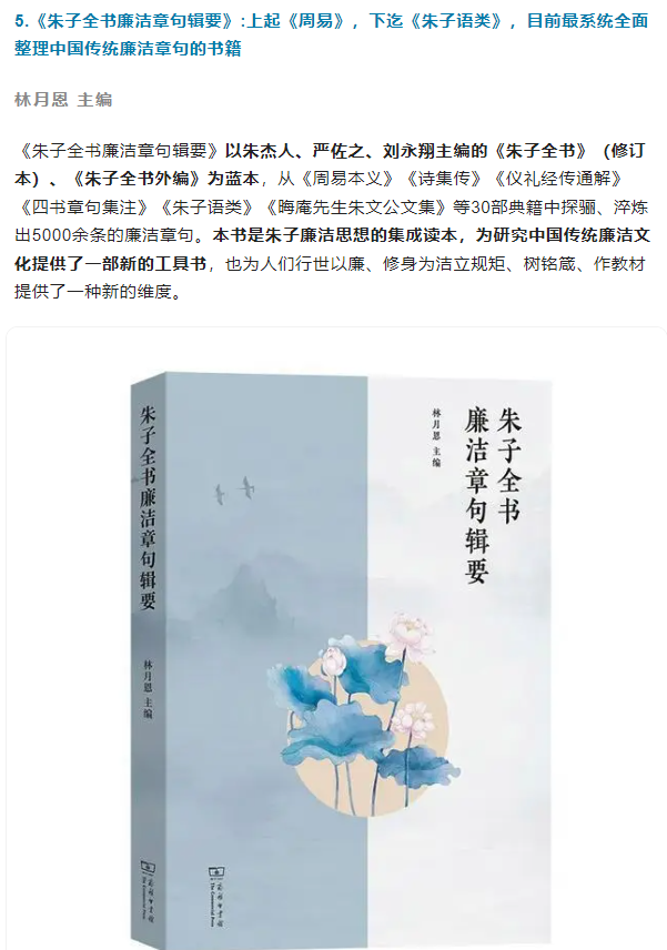 4月15日,商务印书馆发布中央纪委国家监委网站推荐的10本商务印书馆版好书,必一在线平台(中国)官网《朱子全书廉洁章句辑要》入列。10本商务印书馆版获推好书依次是:《中国古史的传说时代》(徐旭生著)、《国学概论》(钱穆著)、《有声的中国——演说的魅力及其可能性》(陈平原著)、《经典儒学核心概念 A Conceptual Lexicon for Classical Confucian Philosophy》([美]安乐哲著)、《朱子全书廉洁章句辑要》(林月恩主编)、《解词说法:机关工作词义考》(潘波著)、《现代科学的诞生》([意]保罗·罗西著;张卜天译)、《改变人类历史的植物》([葡]若泽·爱德华多·门德斯·费朗著;时征译)、《风雨平生——冯其庸口述自传》(冯其庸口述;宋本蓉记录整理)、《古今名人读书法》(张明仁编著)。