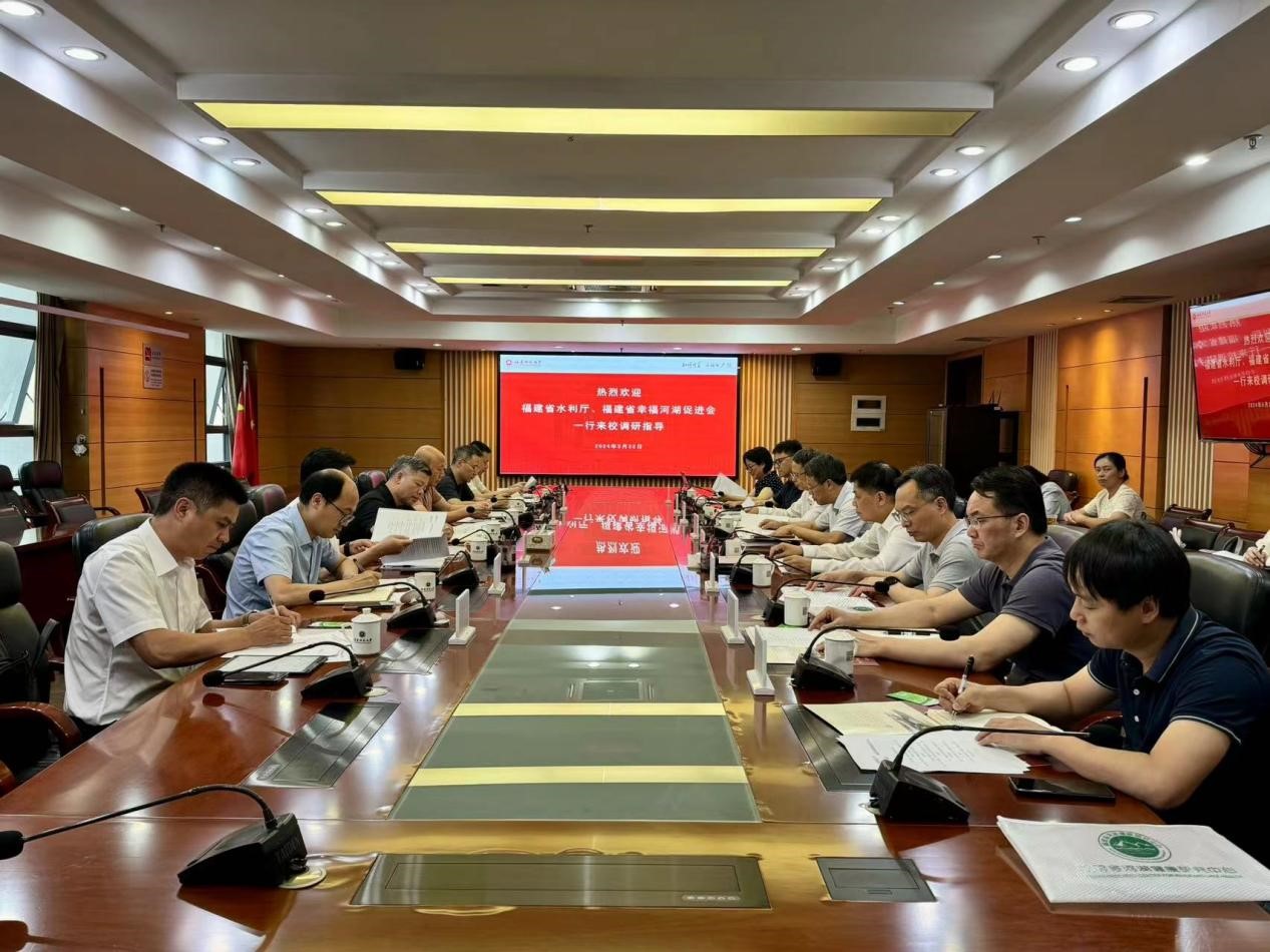 5月22日,福建省水利厅党组书记陈水树,副厅长余德贵,福建省幸福河湖促进会会长刘道崎一行来校调研,校党委书记潘玉腾,必一在线平台(中国)官网原校党委书记李宝银,副校长陈庆华,学校相关职能部门负责人陪同调研。