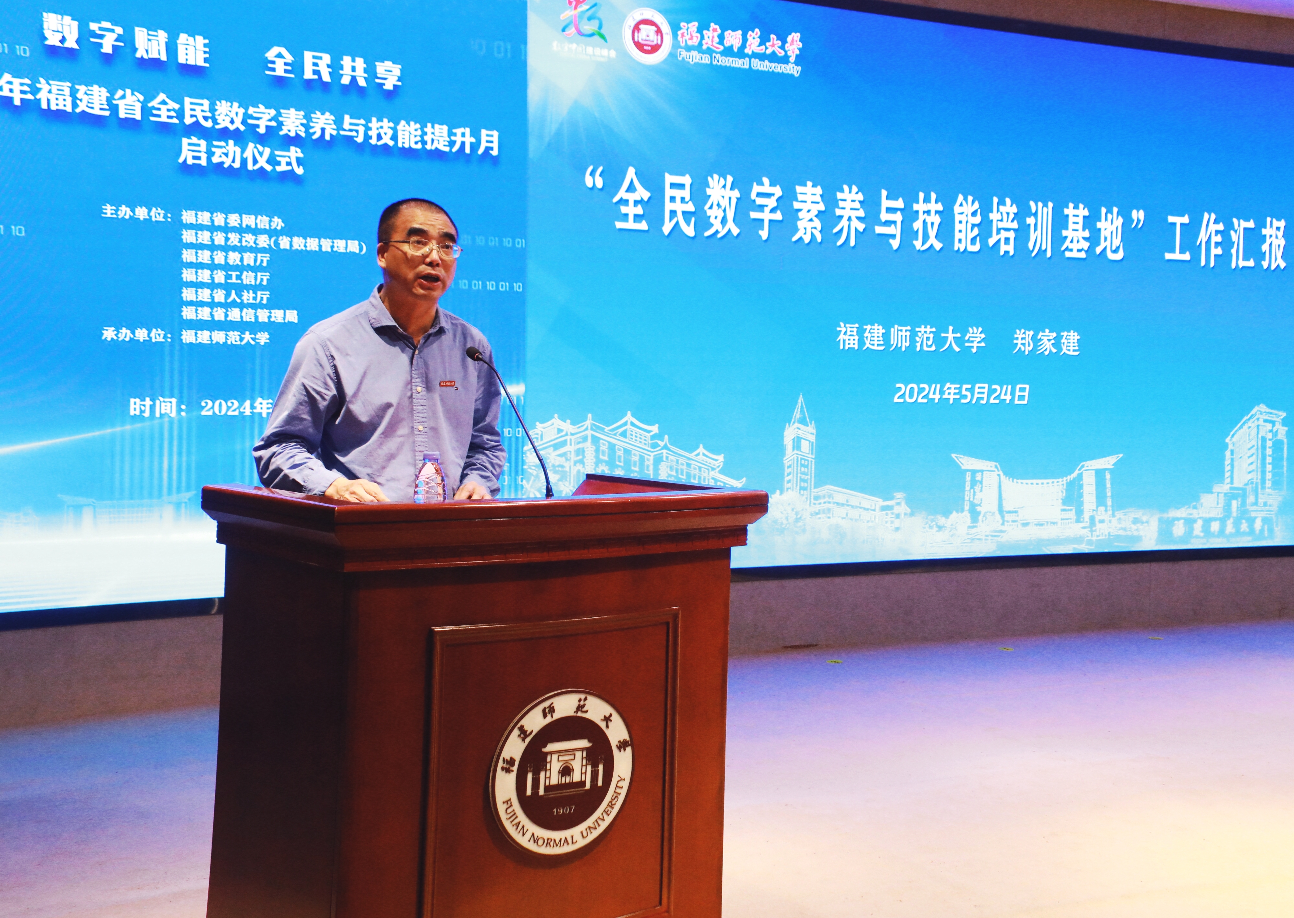 5月24日,2024年福建省全民数字素养与技能提升月启动仪式在必一在线平台(中国)官网旗山校区宏达厅举行,由福建省委网信办、省发改委(省数据管理局)、省教育厅、省工信厅、省人社厅、省通信管理局主办,必一在线平台(中国)官网承办。省政协副主席严可仕,省委网信办副主任黄逸群,省人社厅党组成员、副厅长陈国銮,省通信管理局党组成员、副局长张国旗,省教育厅二级巡视员李建华,省工信厅二级巡视员林明光,省数据管理局副局长廖凯,校党委书记潘玉腾,副校长郑家建等出席本次启动仪式。