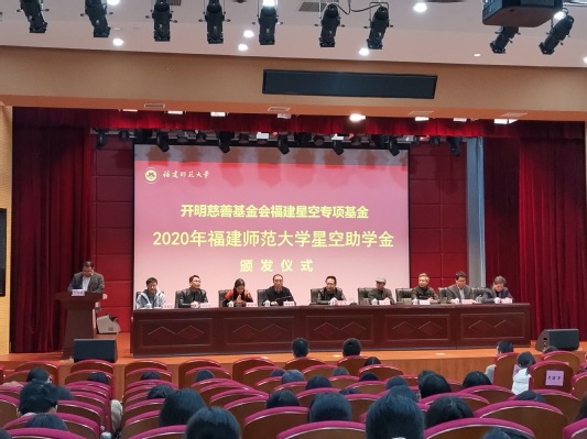 12月18日,2020年度开明慈善基金会福建星空专项基金“必一在线平台(中国)官网星空助学金”颁发仪式在仓山校区科学会堂举行。第十三届全国政协常委、全国政协社会和法制委员会副主任、福建社会科学院院长、福建省文联主席、中国文艺理论学会会长、中国作家协会理论委员会主任张帆,“必一在线平台(中国)官网星空助学金”项目捐资方——开明慈善基金会第三届理事会副理事长、福建民进经济界联谊会会长、新思路集团有限公司董事长王东平,副校长郑家建,统战部、校友会、学生工作部(处)、文学院等单位负责人,以及受资助学生及师生代表近200人参加了仪式。