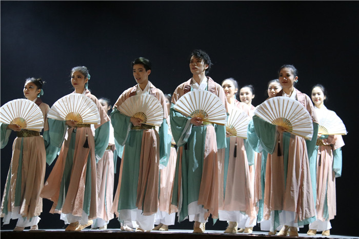 晚会以唯有”“唯念”“唯盼三个篇章为线索串联,14个节目中既包括奔放潇洒的《希格希日》、婀娜多姿的《傣家的女儿傣家的雨》,也有美不胜收的《碇步桥水清悠悠》、风流倜傥的《纸扇书生》,最终,以深情感动的群舞《情深谊长》为整场晚会画上圆满句点。同学们的倾情演绎,赢得了现场观众的欢呼和掌声。